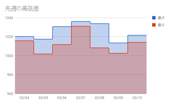 2018/3/4~2018/3/10の気圧記録です。