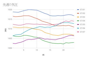 2018/7/1~2018/7/7の気圧記録です。