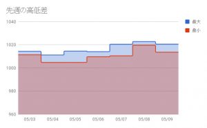1日での最高値と最低値の差が見えるグラフです。