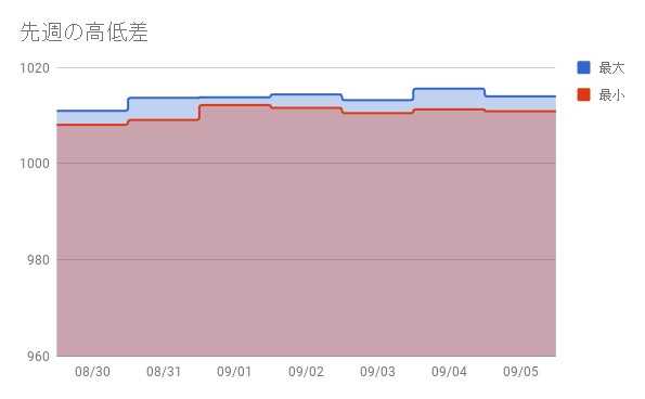 【記録】東京の気圧(2020/8/30~2020/9/5)