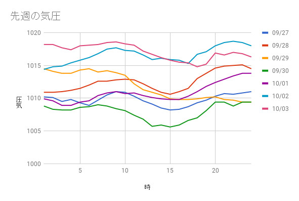 2020/9/27~2020/10/3の気圧記録です。