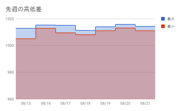 2021/8/15~2021/8/21の気圧記録です。