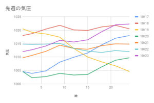 【記録】東京の気圧(2021/10/17~2021/10/23)