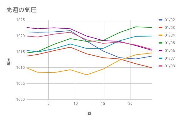 【記録】東京の気圧(2022/1/2~2022/1/8)