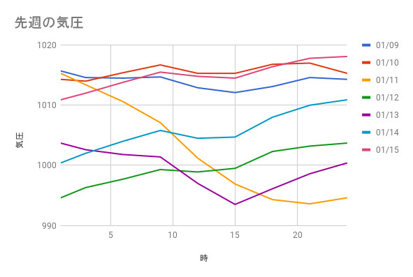 【記録】東京の気圧(2022/1/9~2022/1/15)