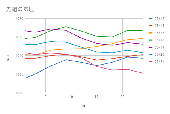 【記録】東京の気圧(2022/5/15~2022/5/21)