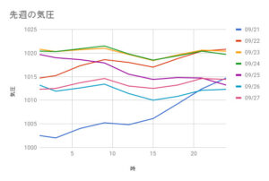 【記録】東京の気圧(2025/9/21~2025/9/27)