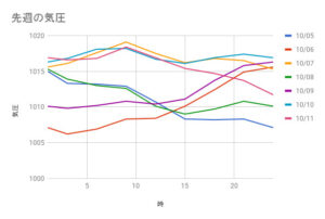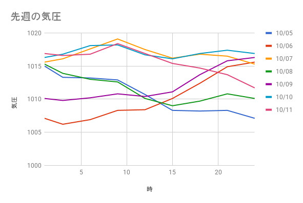 【記録】東京の気圧(2025/10/5~2025/10/11)