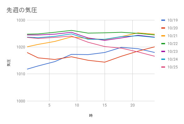 【記録】東京の気圧(2025/10/19~2025/10/25)