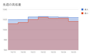 1日での最高値と最低値の差が見えるグラフです。