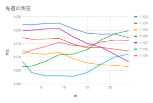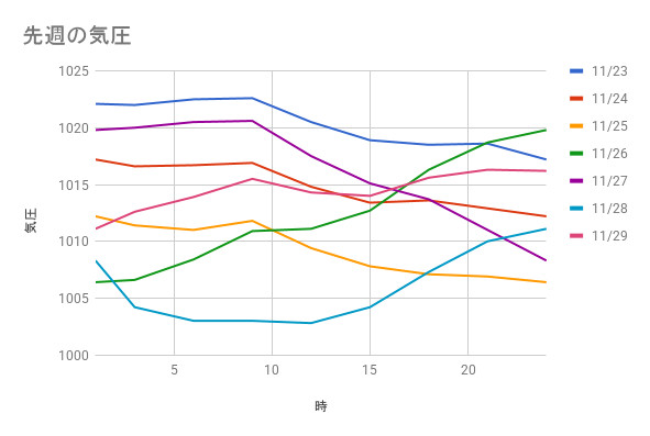 【記録】東京の気圧(2025/11/23~2025/11/29)