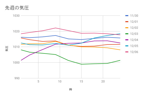 【記録】東京の気圧(2025/11/30~2025/12/6)