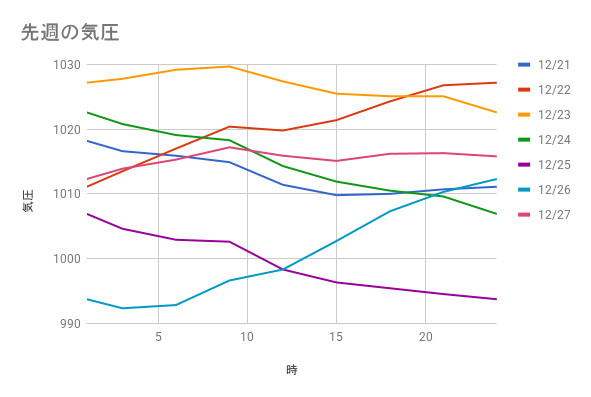 【記録】東京の気圧(2025/12/21~2025/12/27)