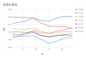 2025/12/28~2026/1/3の気圧記録です。
