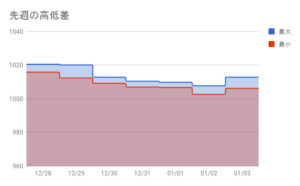 1日での最高値と最低値の差が見えるグラフです。