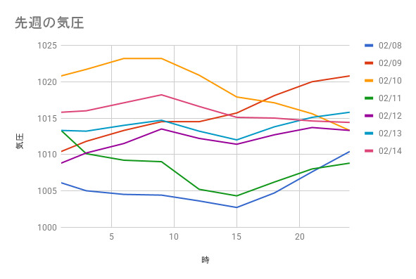 2026/2/8~2026/2/14の気圧記録です。