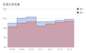 1日での最高値と最低値の差が見えるグラフです。