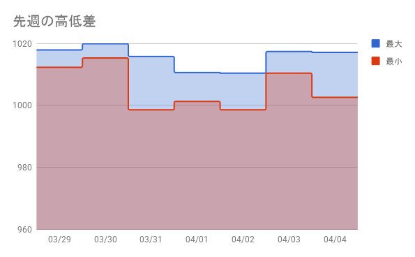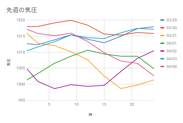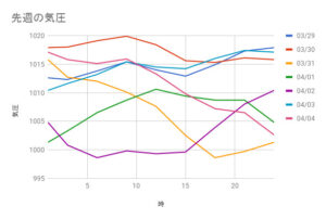 2026/3/29~2026/4/4の気圧記録です。