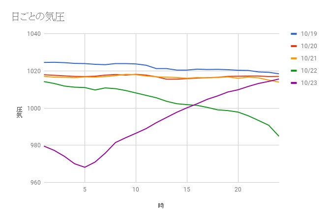 数値は気象庁の東京の気圧を引用してます。(クリックで拡大します)