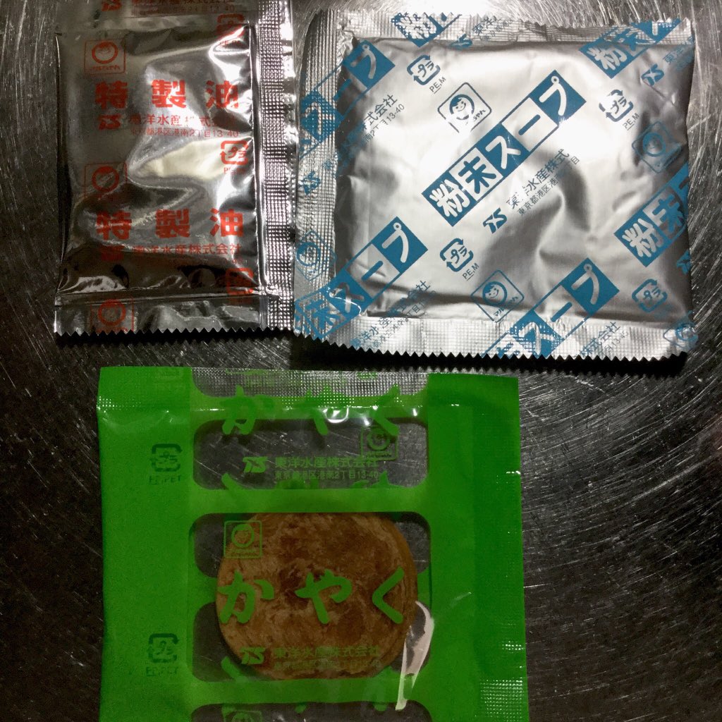 3分経過したら蓋をはがし、特製油を入れて完成です。